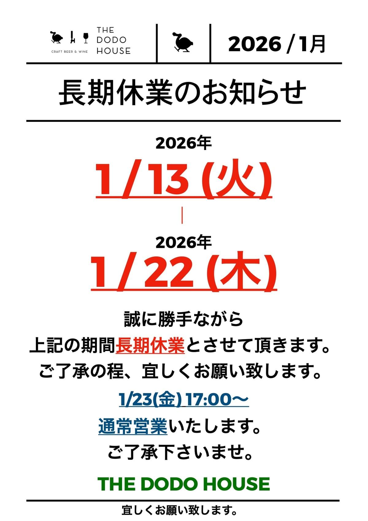 ■開催日程:1/31(Sat) 14:00ー24:00 ■会場:Craft Beer & Wine THE DODO HOUSE ◆◆『だいせんよくできました陸』詳細◆◆ ◆年に1度の、毎年恒例の大山GビールのTTOを今年も開催。 ◆通常常営業のスタイルです。 ご予約希望の方はGoogle,Instagram,当店HPの『公式予約ページ』よりお願いいたします。 ◆大山Gビールのレアなビールを多めに7+1液種ご用意。 ◆イベント特別フードメニューもご用意予定。 ◆今回も大山Gビール・醸造長ヒデさんご来店予定。 毎年1月に開催の大好評のイベント「だいせんよくできました」も6回目。 今年も開催です!是非とも鳥取・大山を楽しみましょう! 是非ともご参加お待ちしております。 THE DODO HOUSE 店主日付と時間を選択